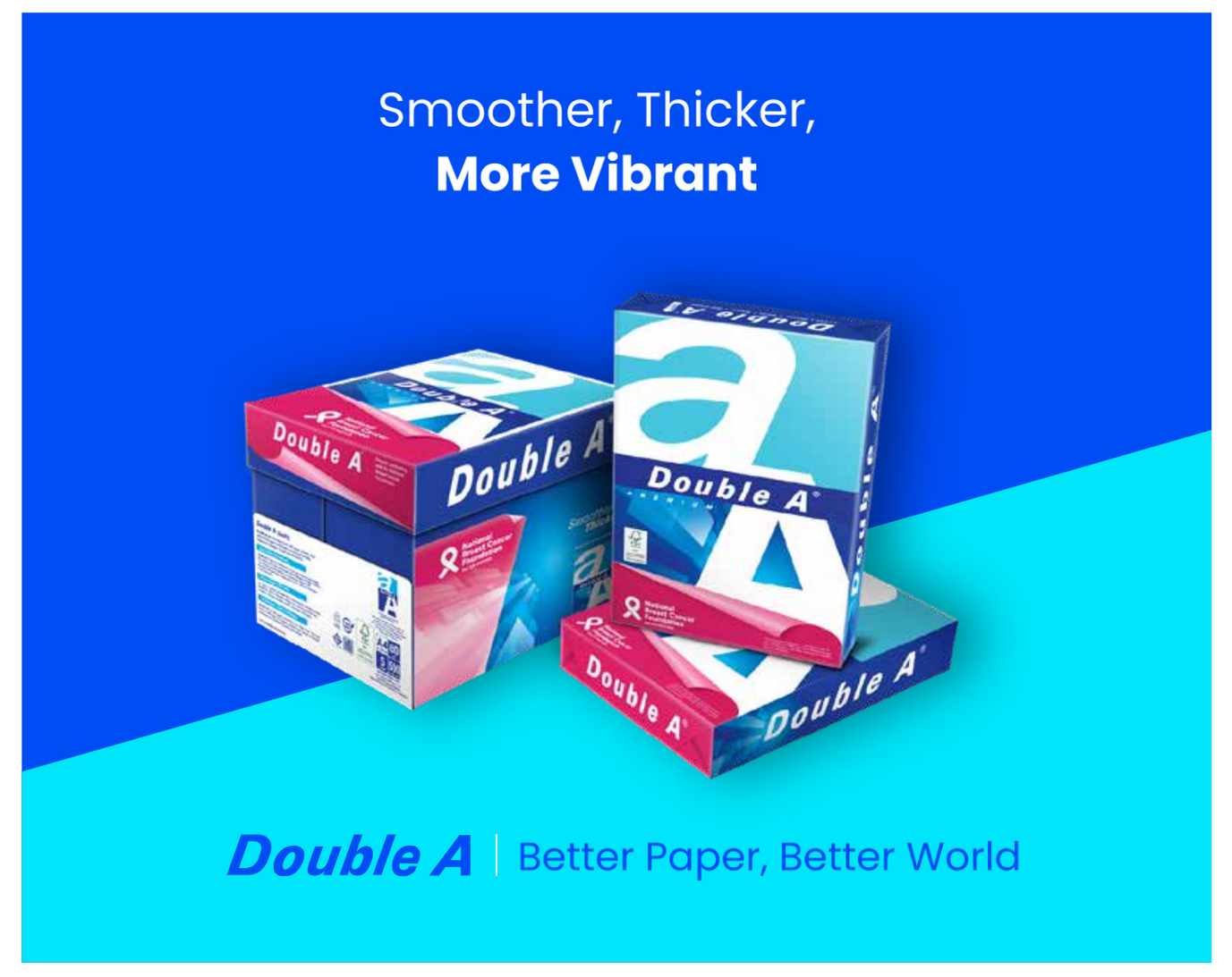 Double A is a premium paper brand recognised worldwide for its high quality, superior performance, and commitment to sustainability. Trusted in over 130 countries, Double A are the leading premium paper brand in Asia with a strong and growing presence across Australia, Europe, and the Middle East.
