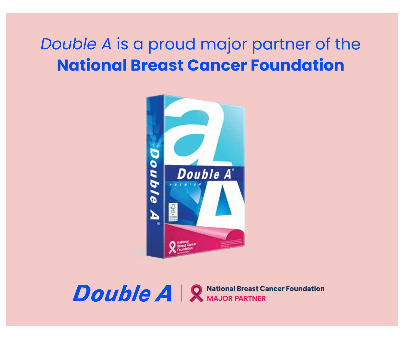 Double A has partnered with the National Breast Cancer Foundation (NBCF) for over 15 years, supporting vital research and awareness. In 2025, Double A strengthened this commitment as a Major Partner, proudly featuring the Pink Ribbon on their packaging.