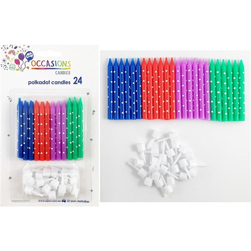 Alpen Occasions Birthday Candles With Holders Polka Dot Assorted Colours Pack Of 24