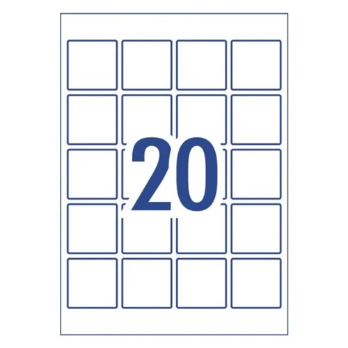 Avery Blank Printable Labels L7124 45 x 45mm Square Gloss White 20UP 200 Labels 10 Sheet