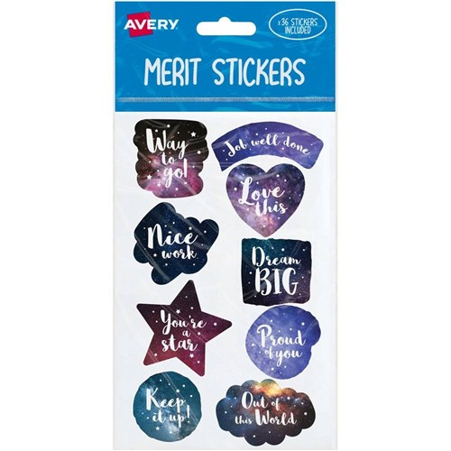 Avery Merit Stickers Cosmos 9 Designs Assorted Colours 36 Stickers