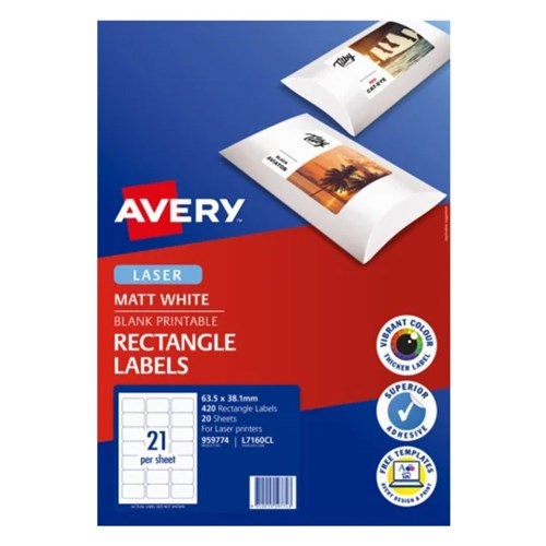 Avery Printable Labels L7160CL 63.5 x 38.1mm Rectangle Photo Matte White 21UP 420 Labels