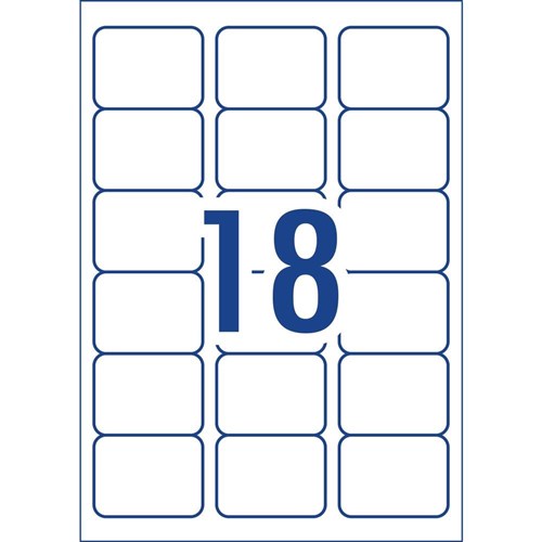 • Size: 63.5x46.6mm 1800 labels, 100 sheets. 18 labels per sheet (18UP).
