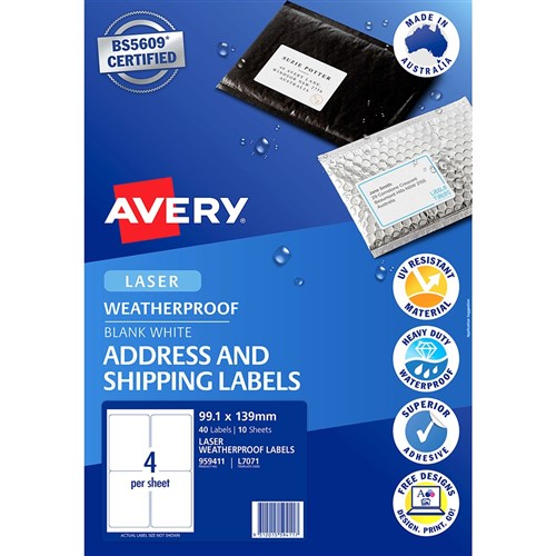Avery Weatherproof Address & Shipping Laser White L7071 99.1x139mm 4UP 40 Labels