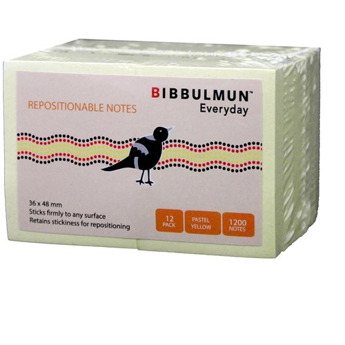 Bibbulmun Sticky Notes 36x48mm Yellow 100 Sheets Pad Pack of 12