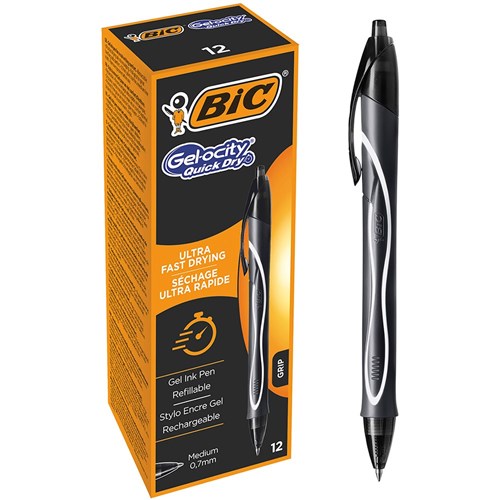Bic Gelocity Gel Pen Retractable Medium 0.7mm Black