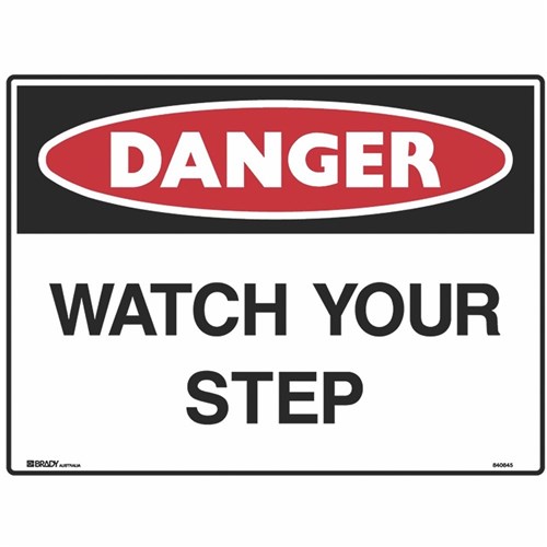 Brady Danger Sign Watch Your Step 600W x 450mmH Metal White/Red/Black