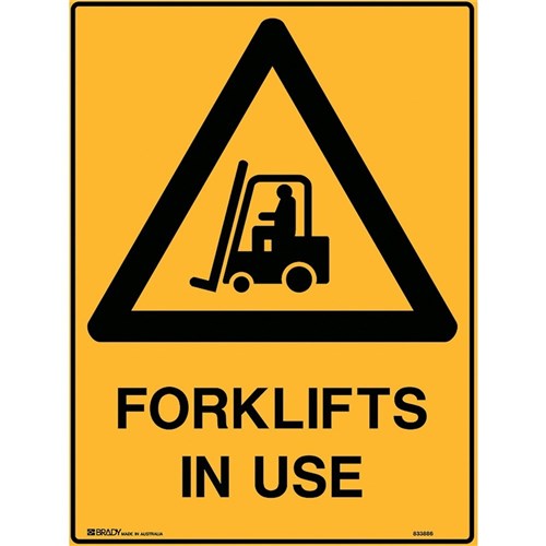 Brady Warning Sign Forklifts In Use 450W x 600mmH Polypropylene Yellow And Black
