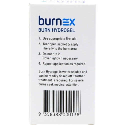 • Burnex burn hydrogel is first aid burn treatment and can be used for minor burns, scalds and sunburn.