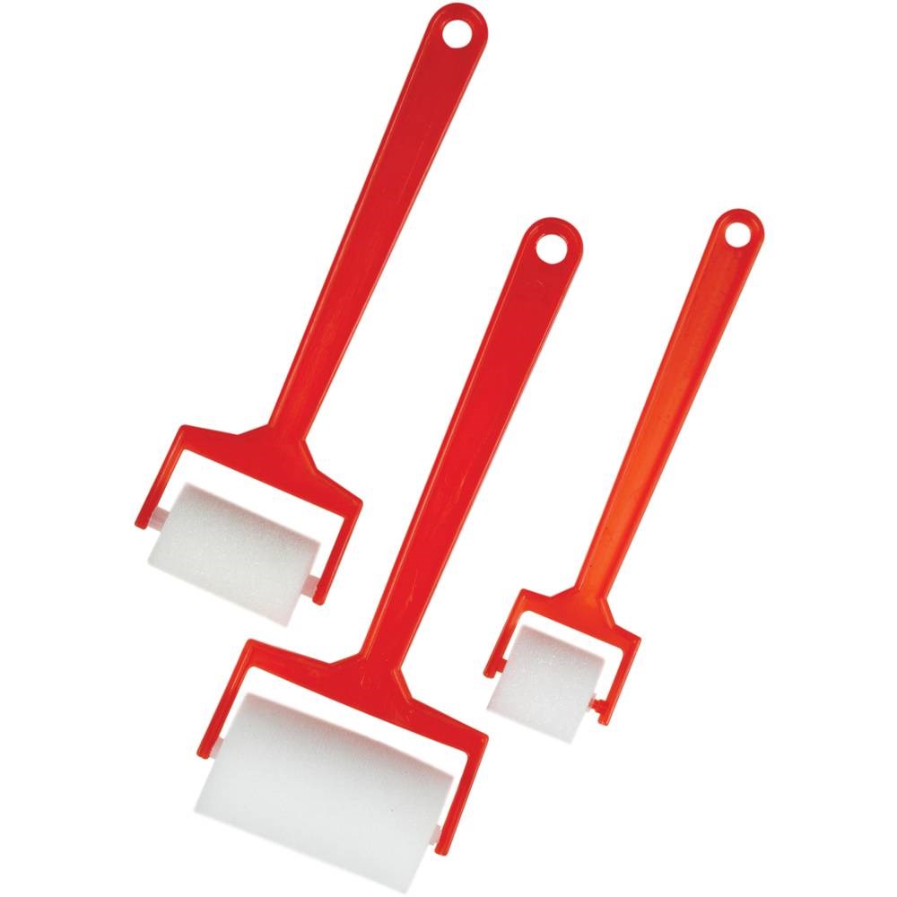 • They have a plastic handle with a soft sponge roller.