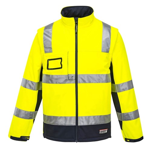 Huski Chassis Hi-Vis 2-in-1 Contrast Softshell Jacket 3 Layer 4XL Yellow And Navy