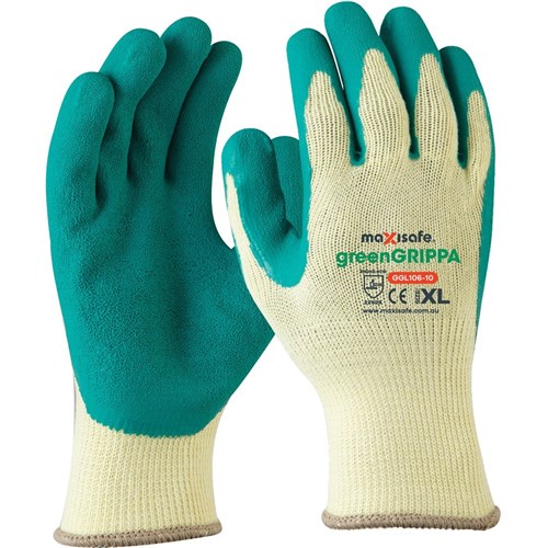 Maxisafe greenGRIPPA Gloves Latex Dipped Palm And Knitted Poly Cotton 2XL Green