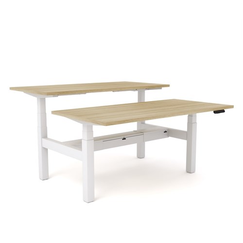 OLG Agile Motion Double Sided Desk + Cable Tray 1200Wx1500Dx 620-1270mmH White/New Oak
