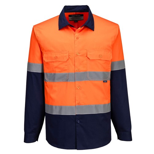 Portwest Industrial Hi-Vis Lightweight Contrast Shirt Long Sleeve 9XL Orange/Navy