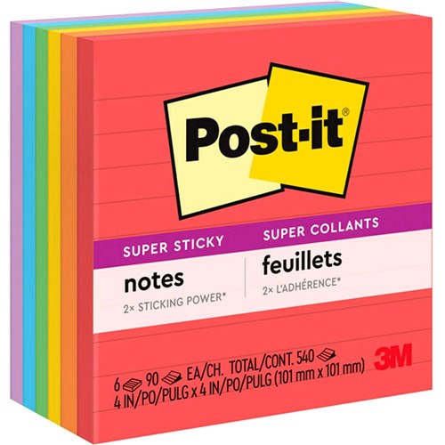 POST IT NOTE SUPER STICKY 675 6SSAN ASSORTED NEON 98X98MM