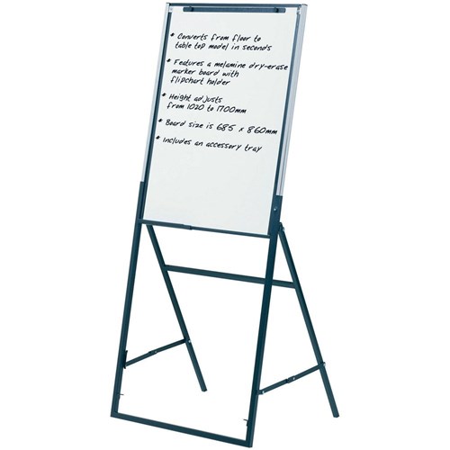 • Combined whiteboard and flipchart easel in one.