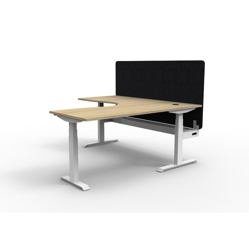 Rapidline Boost+ Corner Workstation + Black Eco Screen + Tray 1500/1500W Oak/White
