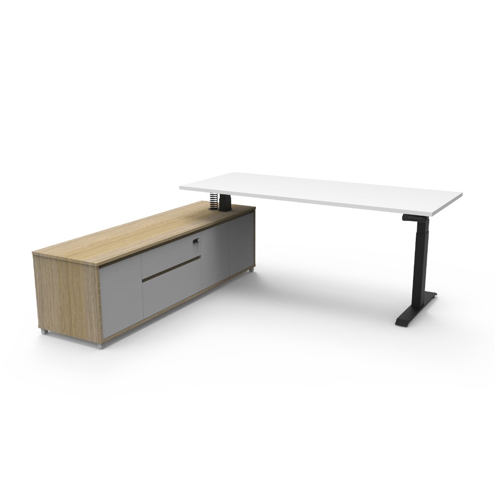 Rapidline Boost+ Executive Desk + LHS Cabinet 2020W x 2011D x 620-1270mmH White/Blk