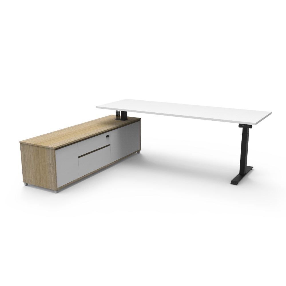 Rapidline Boost+ Executive Desk + LHS Cabinet 2270W x 1936D x 620-1270mmH White/Blk