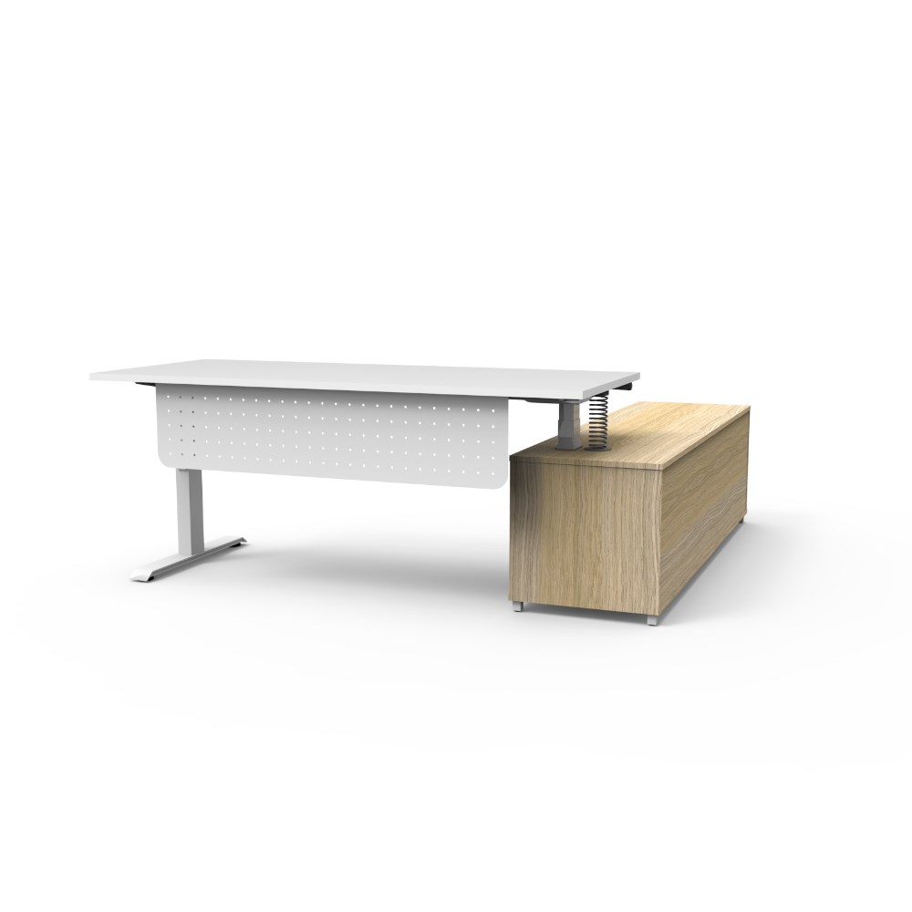 Rapidline Boost+ Executive Desk + LHS Cabinet+Panel 2020W x 1936D x 620-1270mmH Wht/Wht