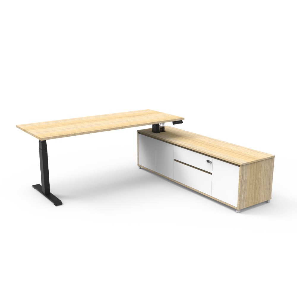 Rapidline Boost+ Executive Desk + RHS Cabinet 2020W x 1936D x 620-1270mmH Oak/Black