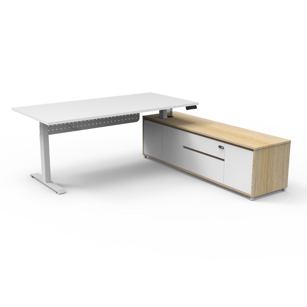 Rapidline Boost+ Executive Desk + RHS Cabinet+Panel 2020W x 2011D x 620-1270mmH Wht/Wht