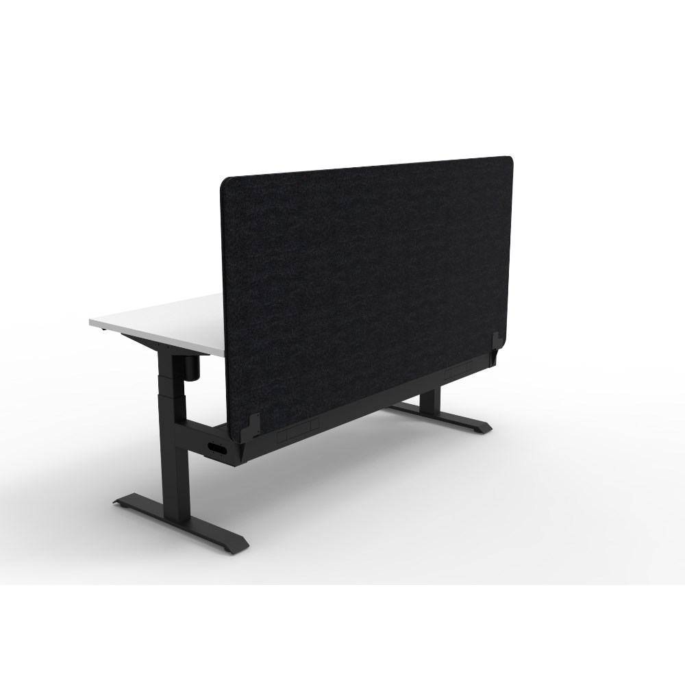 • Electric height adjustable single sided workstation with Natural White top and Black Satin frame, Black Eco screen and cable tray.