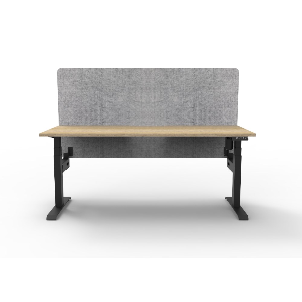• Electric height adjustable single sided workstation with Natural Oak top and Black Satin frame, Grey Eco screen.