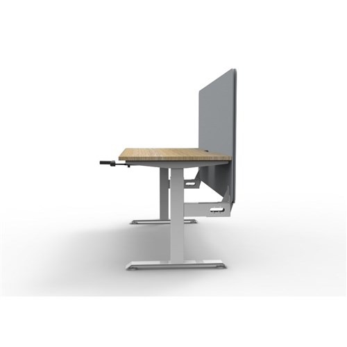 • Manual crank height adjustable single sided workstation with Natural Oak top and White Satin frame, Grey Eco screen.