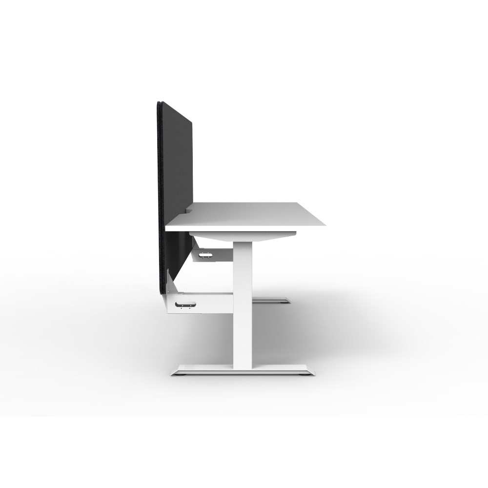 • Single sided workstation with White top and White Satin frame and Black Eco screen.