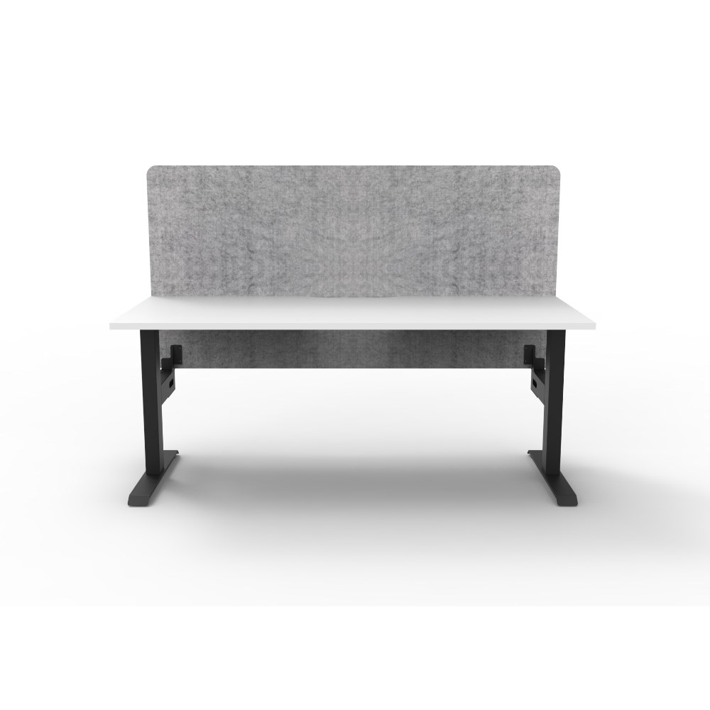 • Single sided workstation with White top and Black Satin frame and Grey Eco screen.