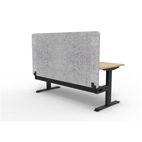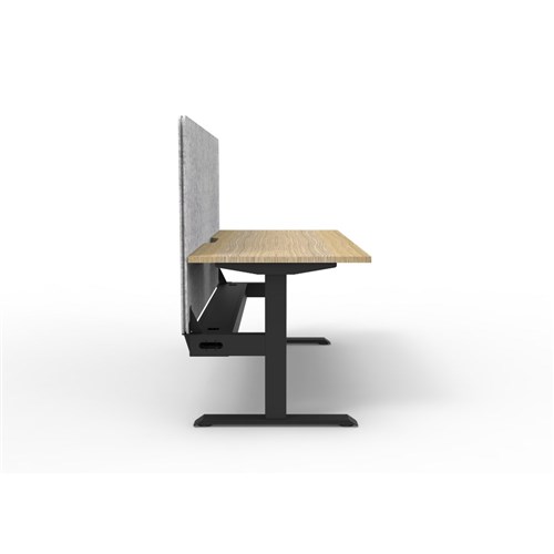 • Single sided workstation with Natural Oak top and Black Satin frame, Grey Eco screen and cable tray.