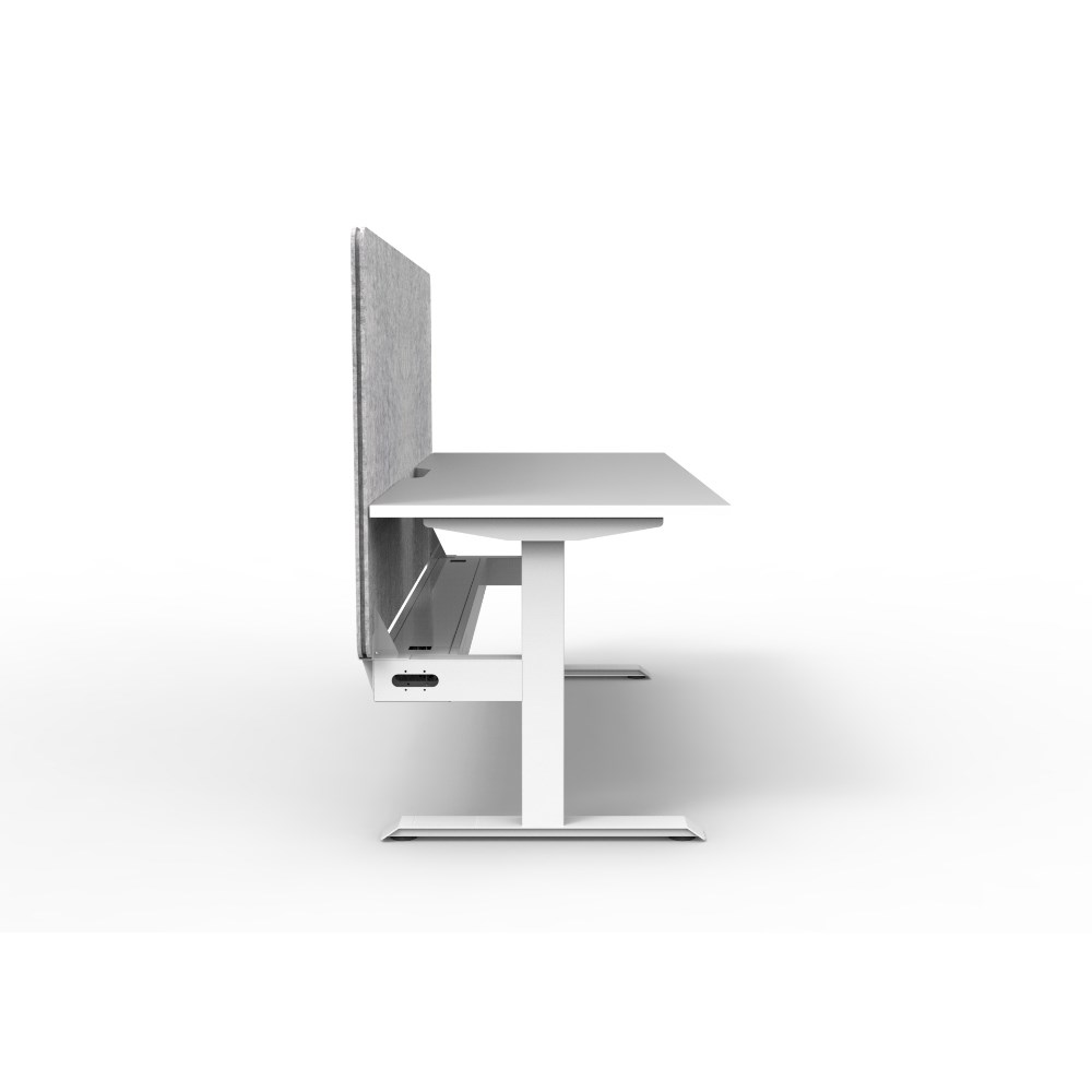 • Single sided workstation with White top and White Satin frame, Grey Eco screen and cable tray.
