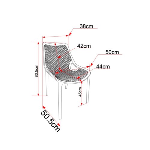 • Back Height: 420mm. Seat Height Floor To Seat: 450mm. Overall Height: 835mm.