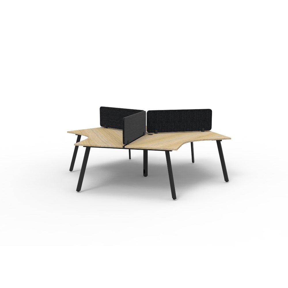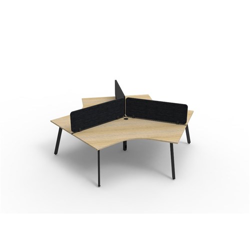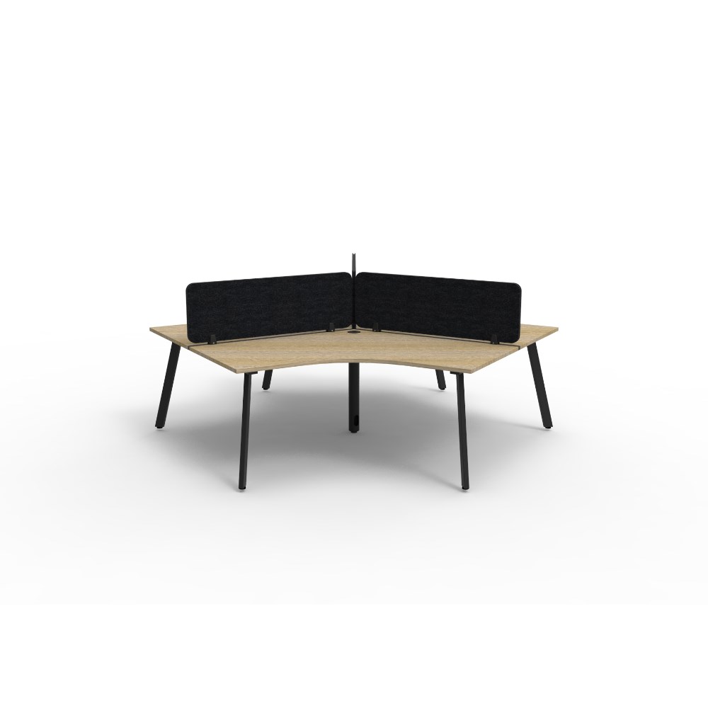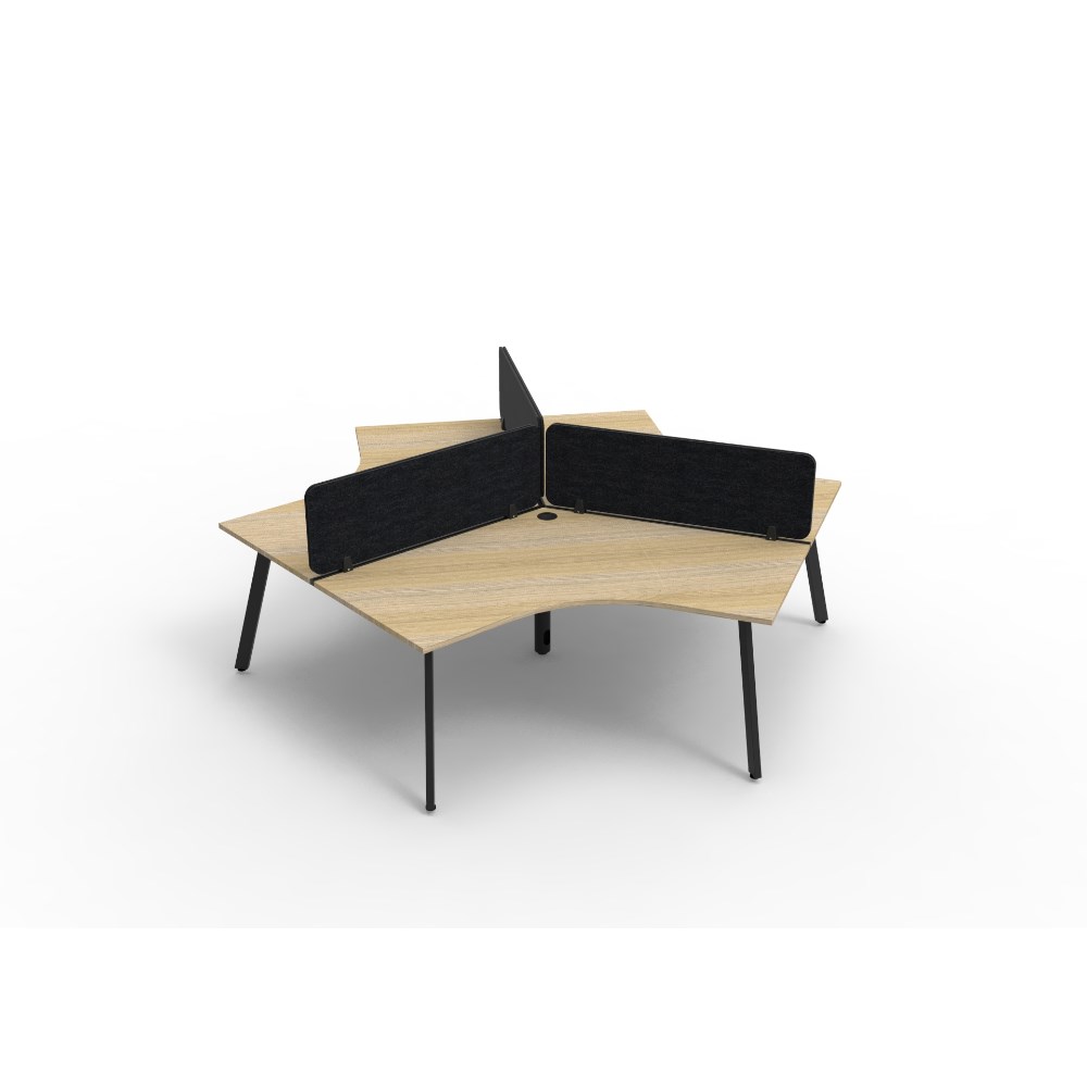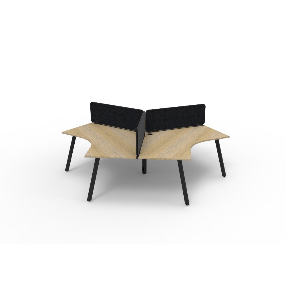 • 3 person 120 degree workstation with Natural Oak top and Black Satin frame, Black Eco screen.