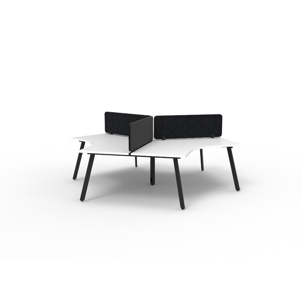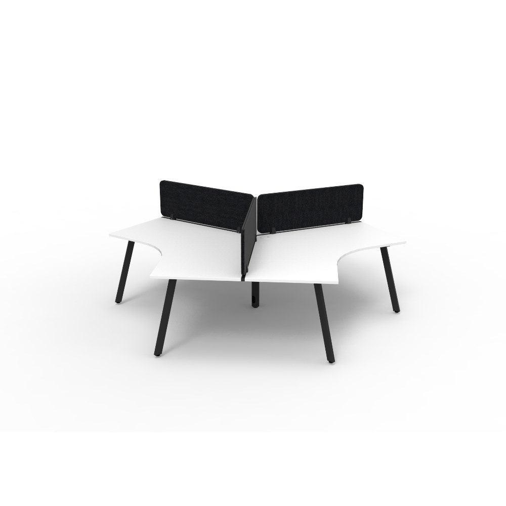 • 3 person 120 degree workstation with Natural White top and Black Satin frame, Black Eco screen.