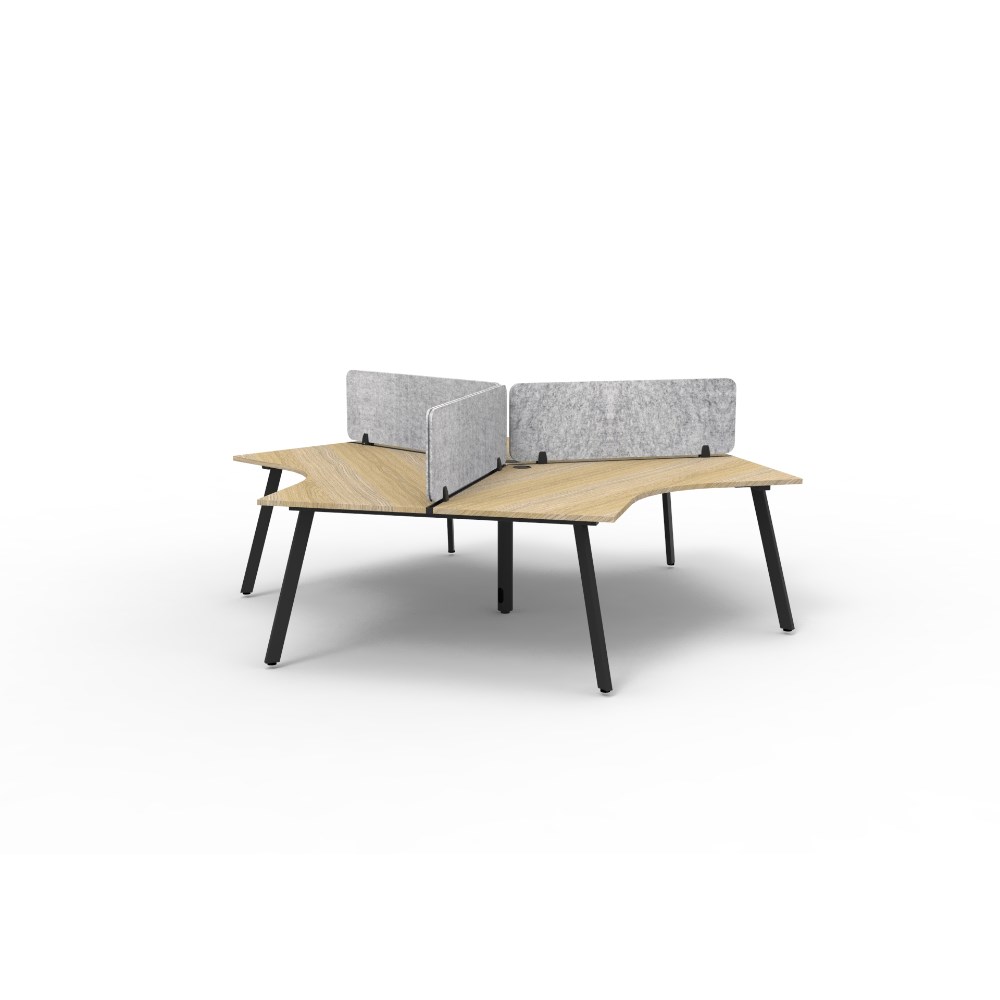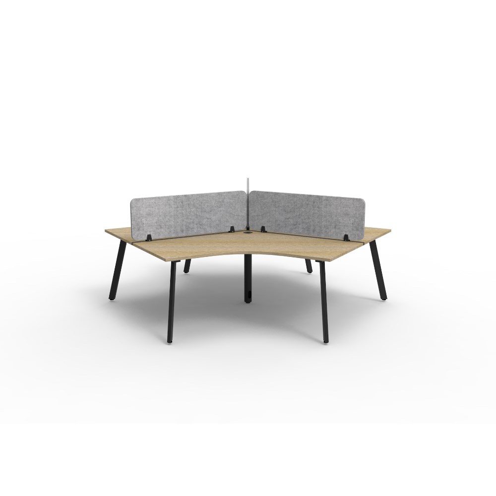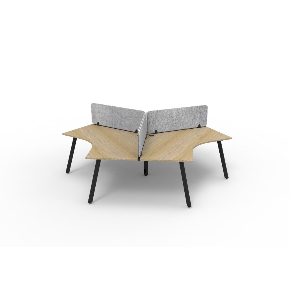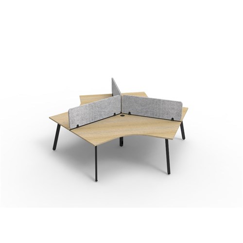 • 3 person 120 degree workstation with Natural Oak top and Black Satin frame, Grey Eco screen.