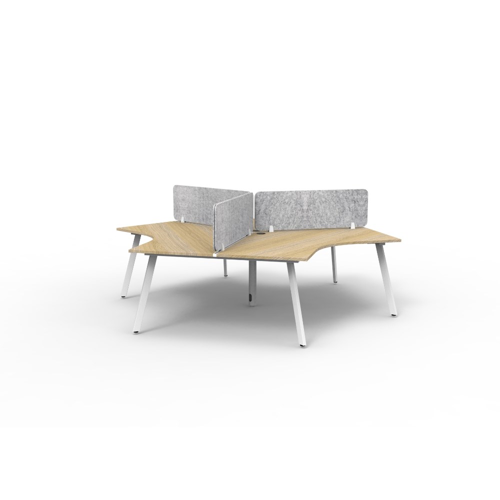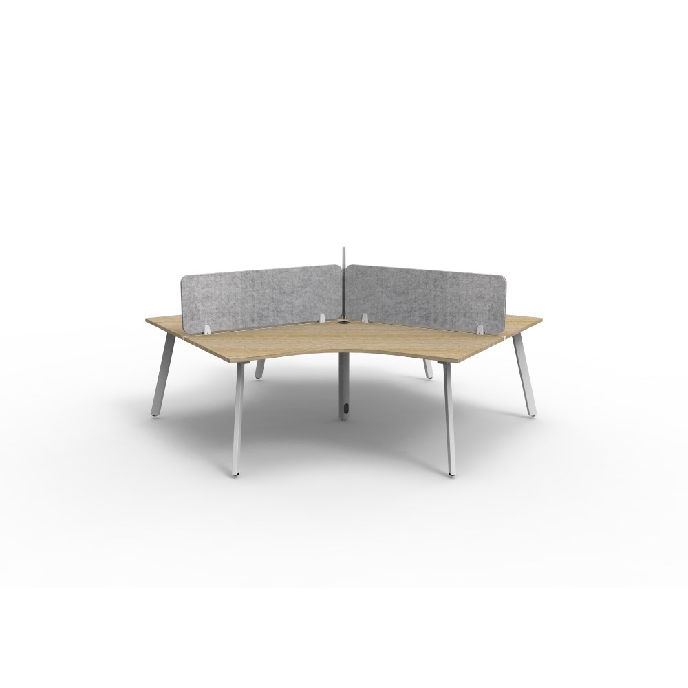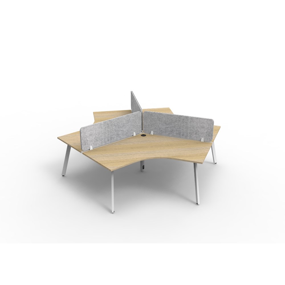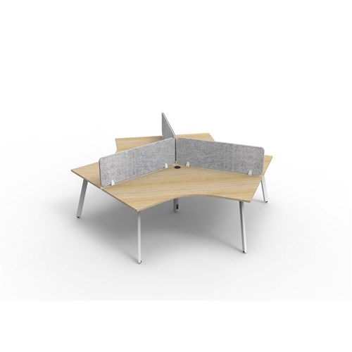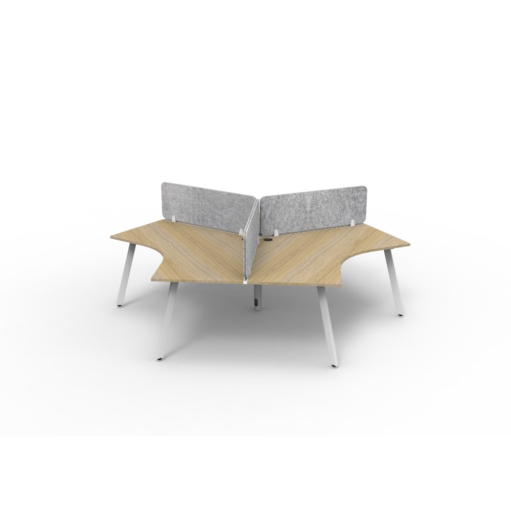• 3 person 120 degree workstation with Natural Oak top and White Satin frame, Grey Eco screen.