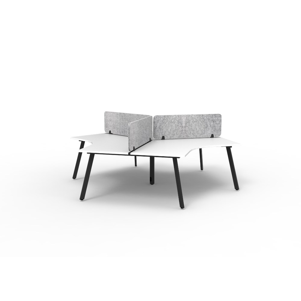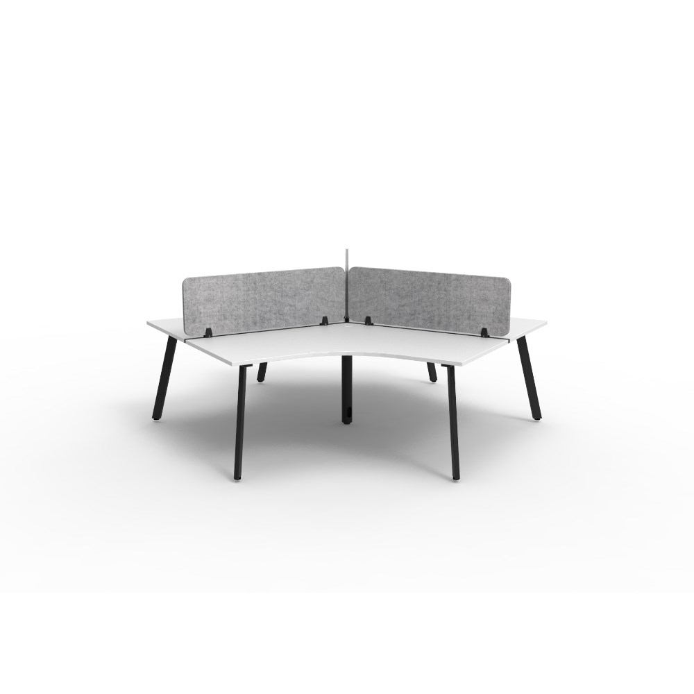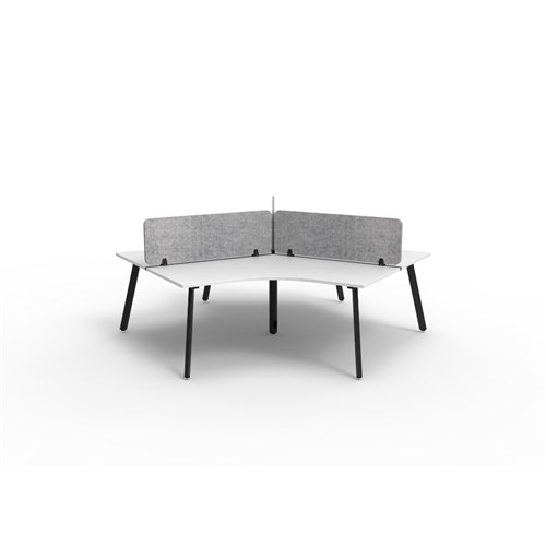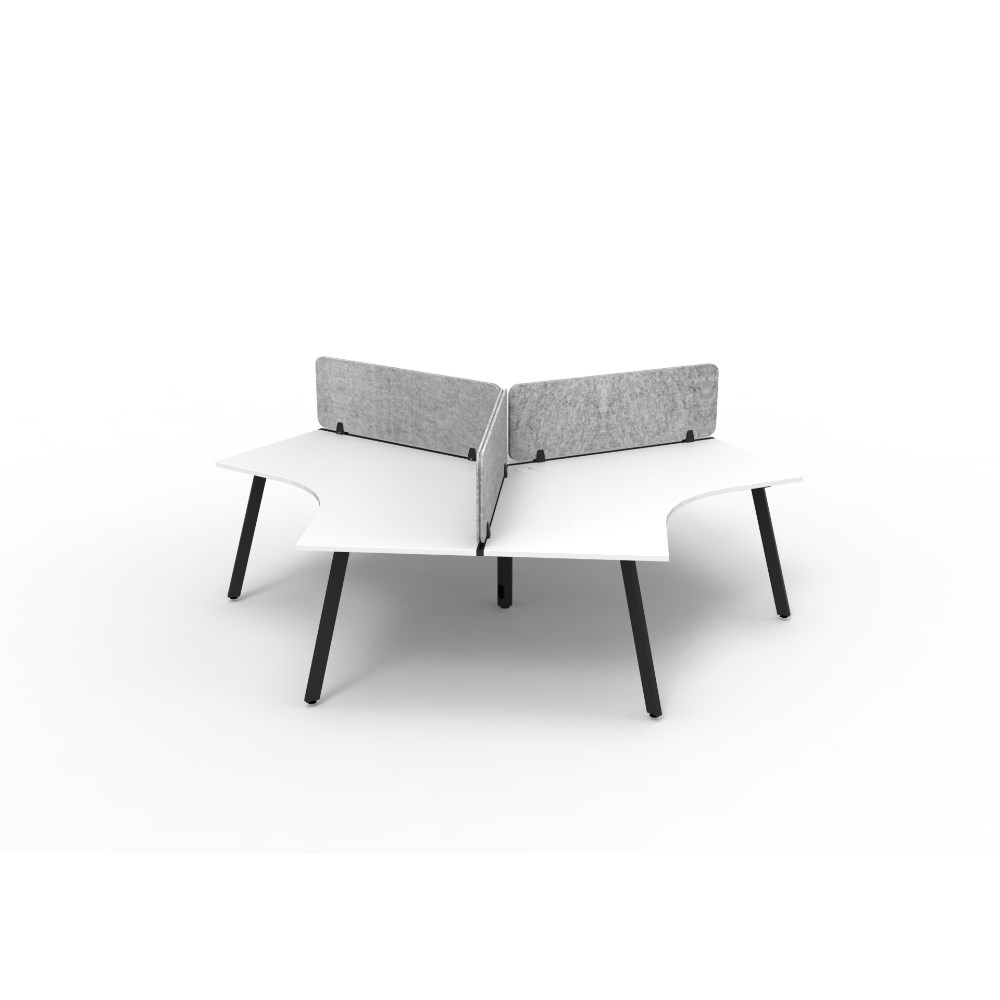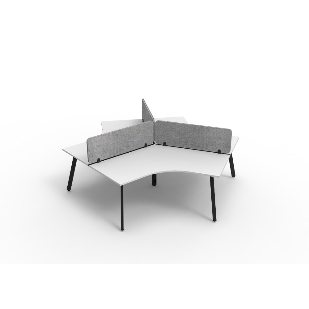 • 3 person 120 degree workstation with Natural White top and Black Satin frame, Grey Eco screen.