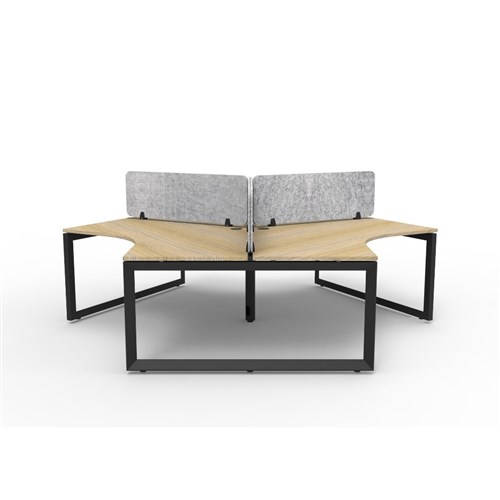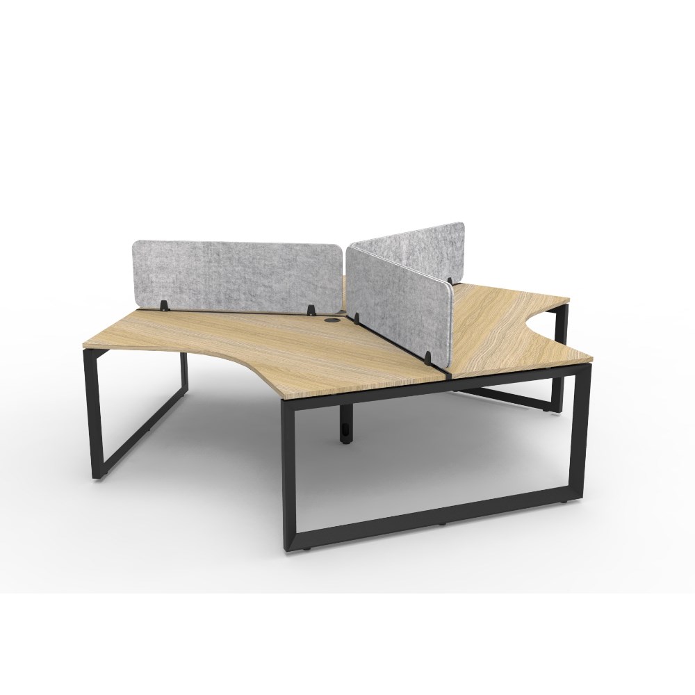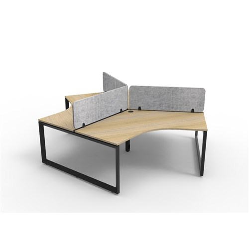 • 3 person 120 degree workstation with Natural Oak top and Black Satin frame, Grey Eco screen.