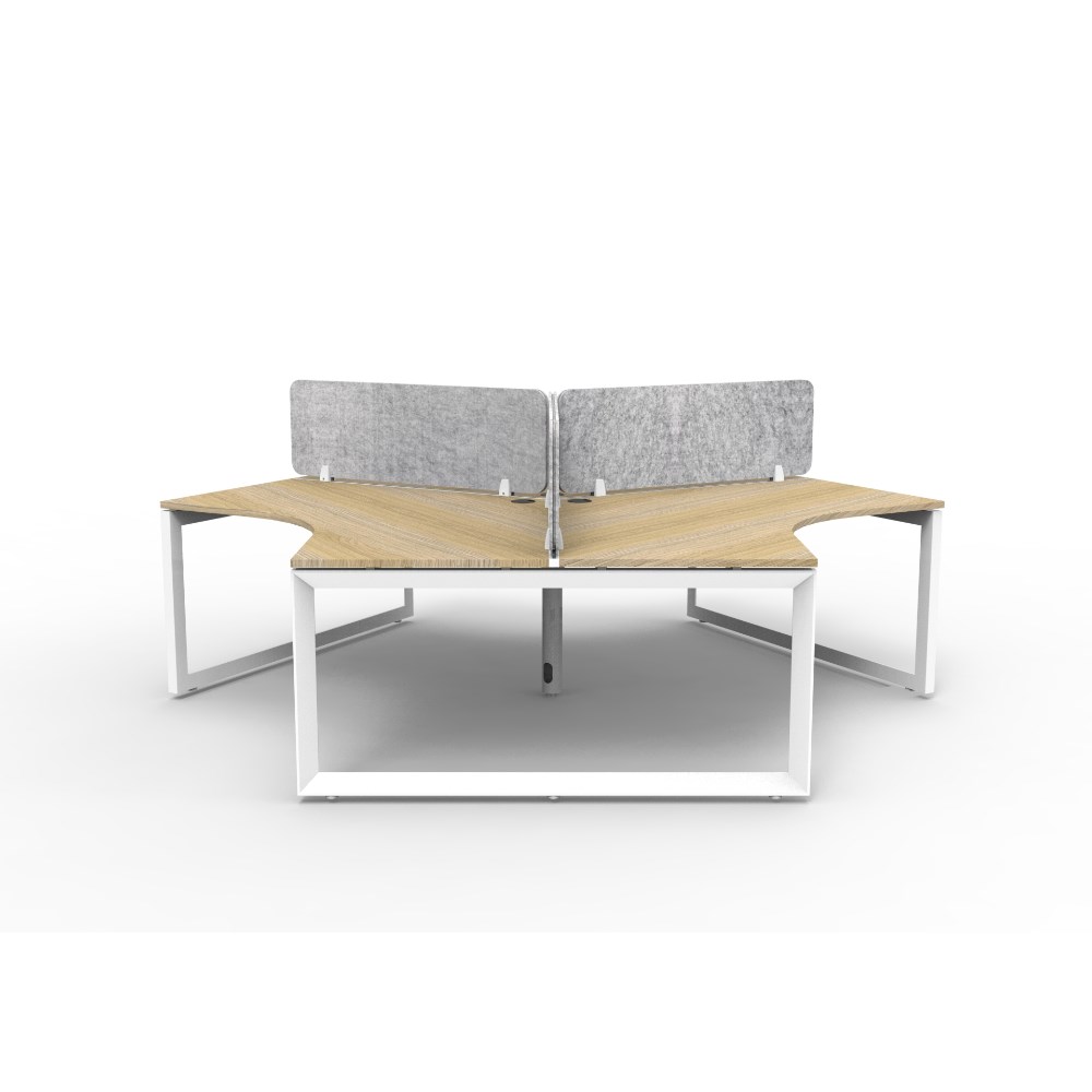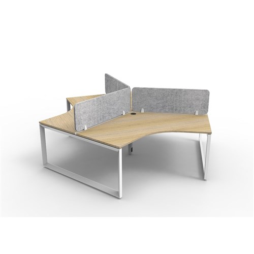 • 3 person 120 degree workstation with Natural Oak top and White Satin frame, Grey Eco screen.