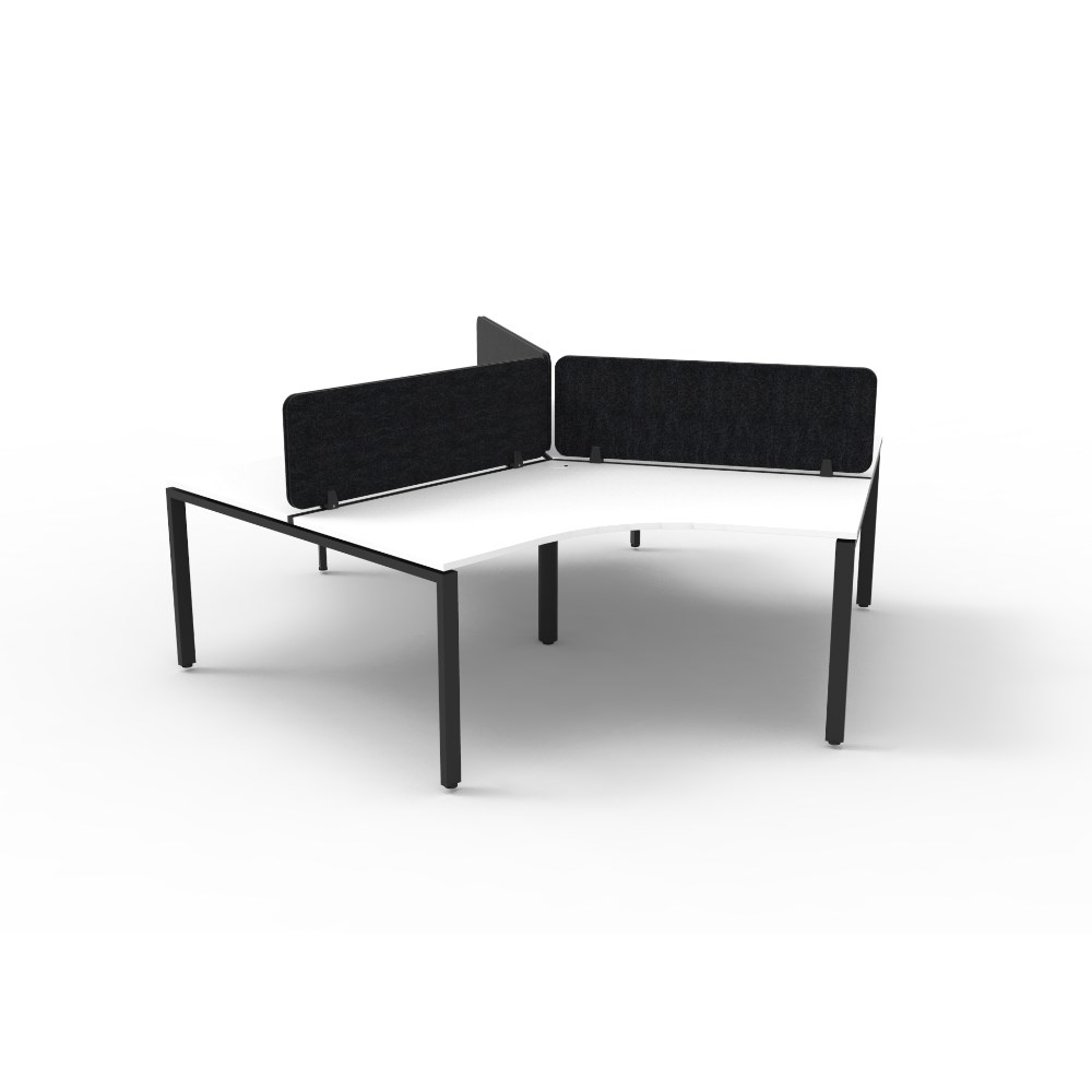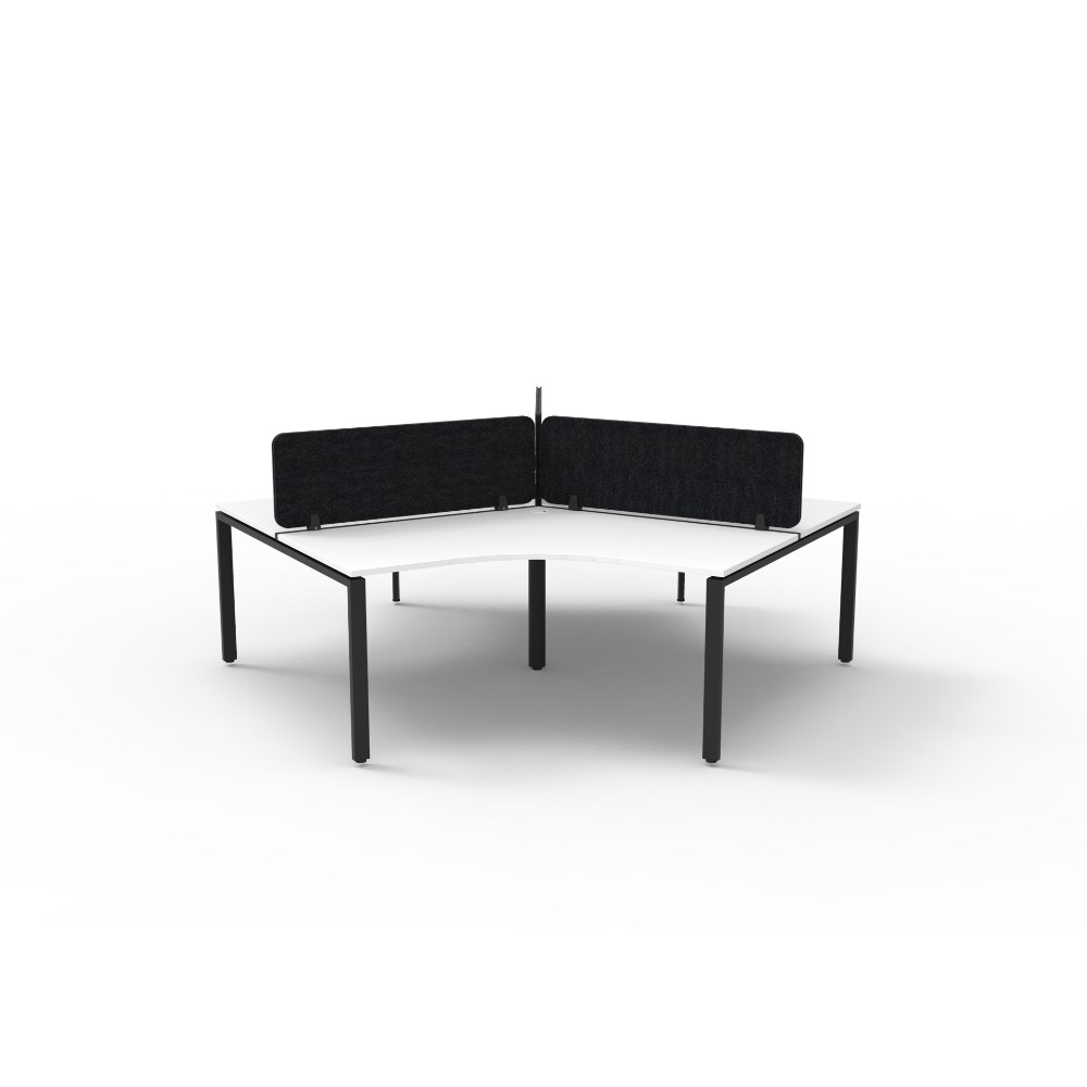 • 3 person 120 degree workstation with White top and Black Satin frame, Black Eco screen.