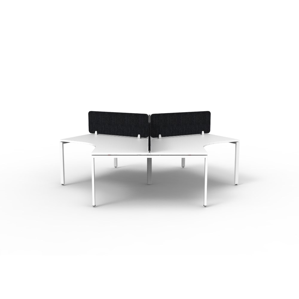 • 3 person 120 degree workstation with White top and White Satin frame, Black Eco screen.
