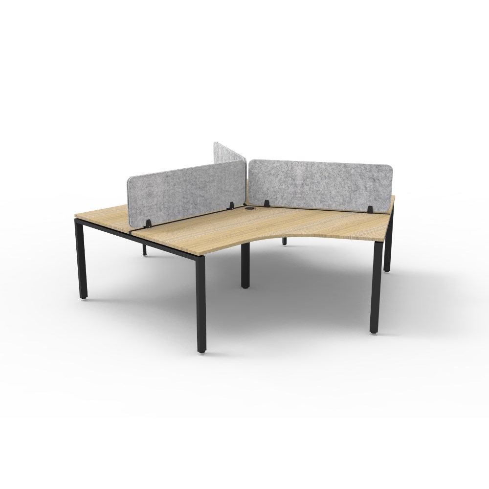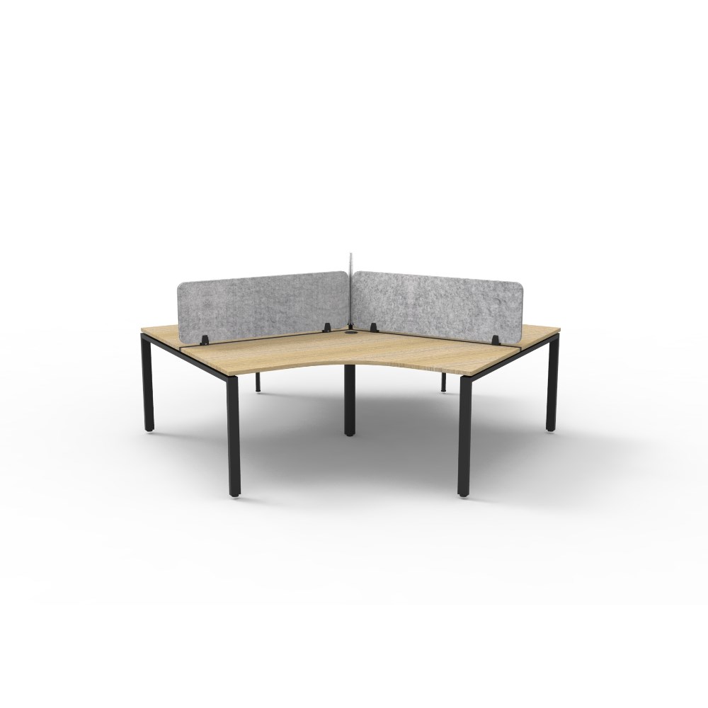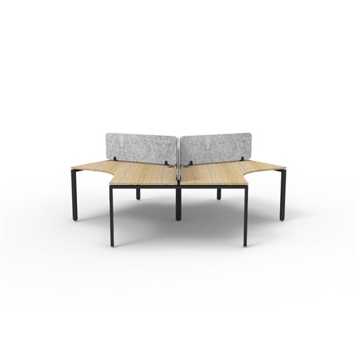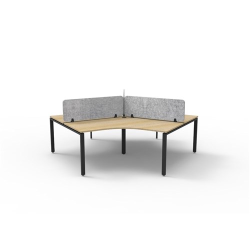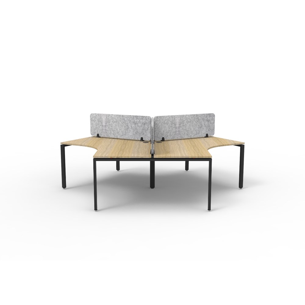 • 3 person 120 degree workstation with Natural Oak top and Black Satin frame, Grey Eco screen.