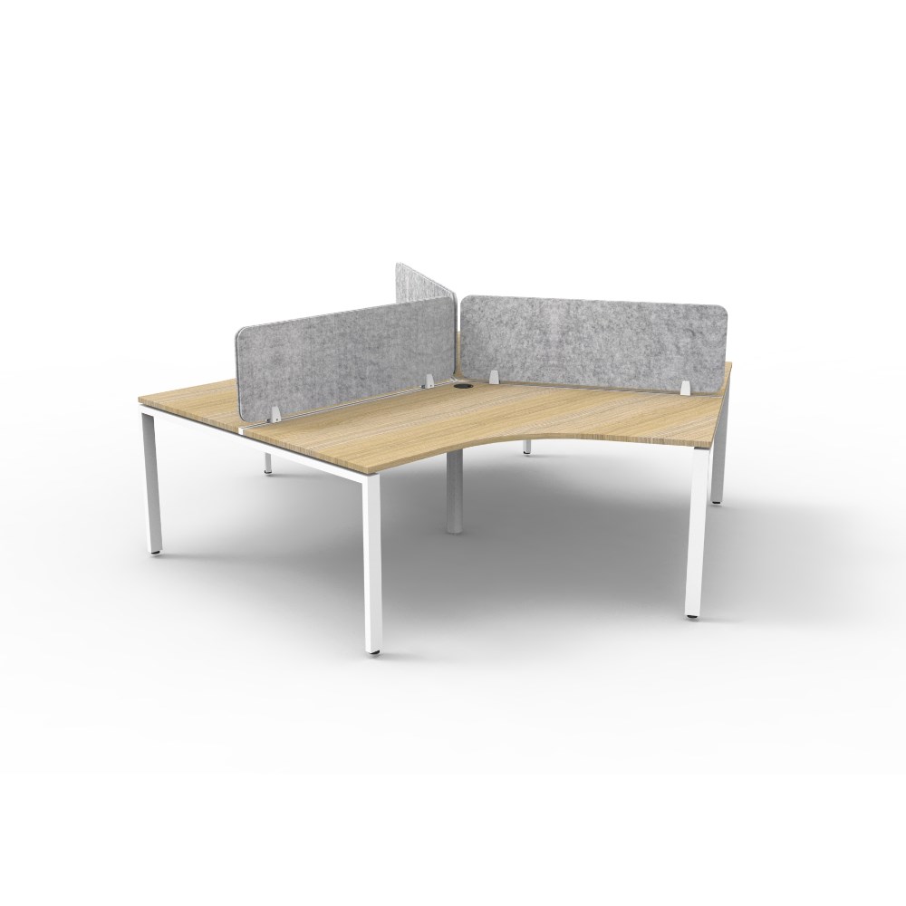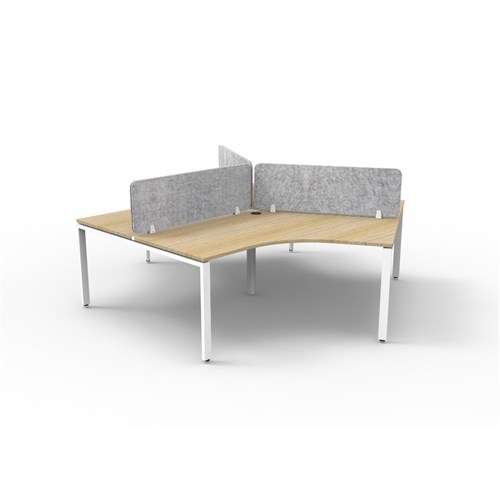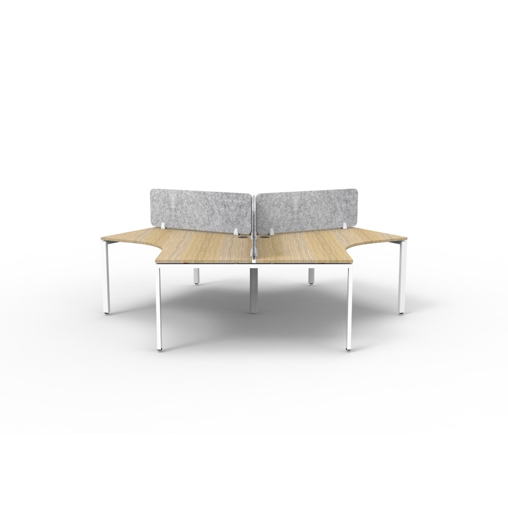 • 3 person 120 degree workstation with Natural Oak top and White Satin frame, Grey Eco screen.