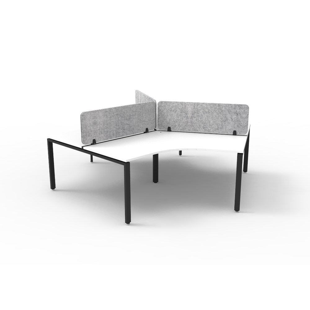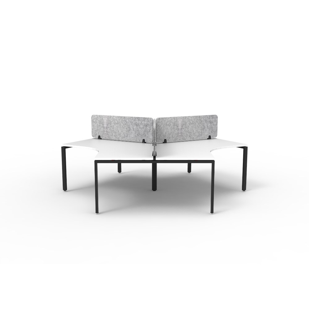 • 3 person 120 degree workstation with White top and Black Satin frame, Grey Eco screen.