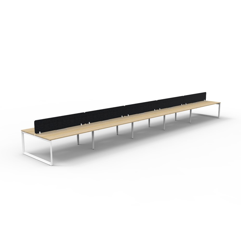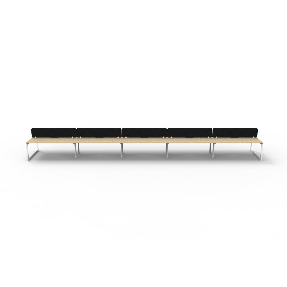 • 10 person double sided workstation with Natural Oak top and White Satin frame, Black Eco screen.