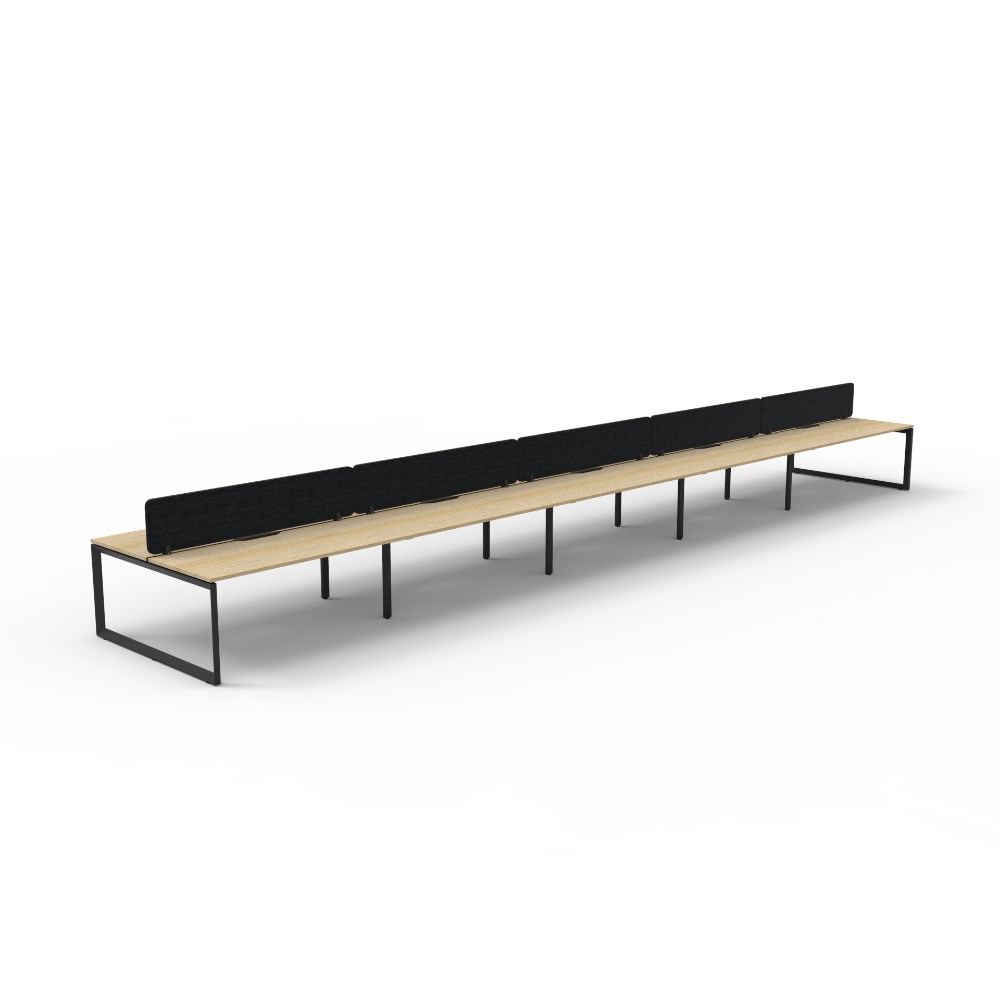 • 10 person double sided workstation with Natural Oak top and Black Satin frame, Black Eco screen.