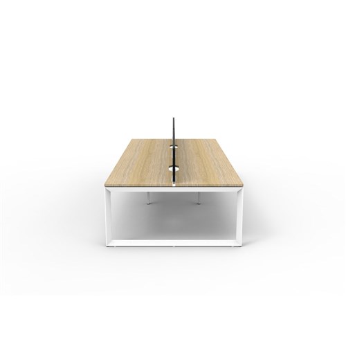 • 4 person double sided workstation with Natural Oak top and White Satin frame, Black Eco screen.