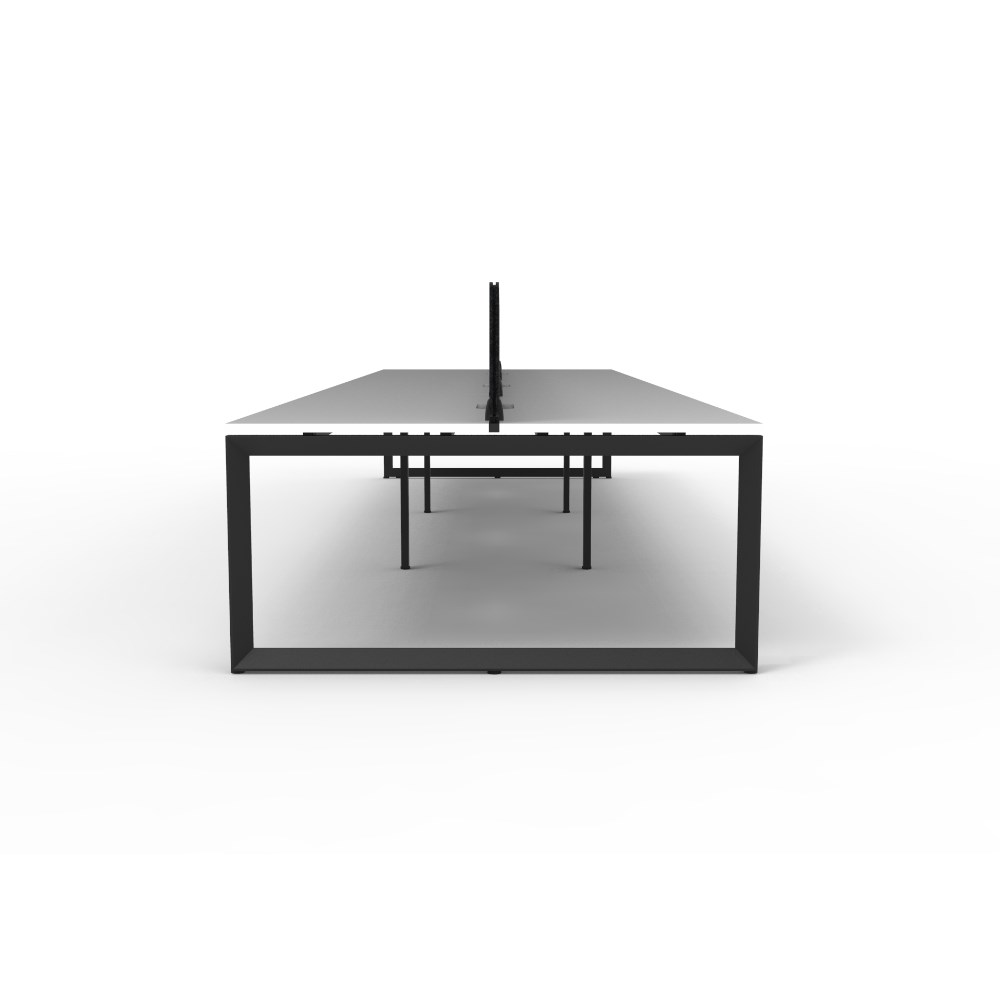 • 6 person double sided workstation with White top and Black Satin frame, Black Eco screen.
